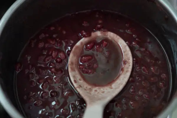 - Escurrir y verter las azuki en una cazuela, cubrir con agua y llevar a ebullición