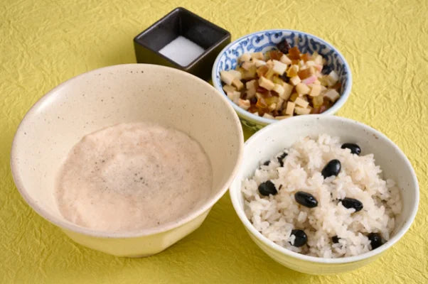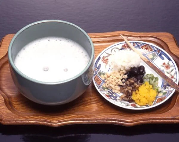 Dependiendo de la zona, se suele consumir con habas de soja negra cocidas, arroz cocido, encurtidos, trozos de tofu frito (abura age), raíz de helecho y alga kombu, entre otros.