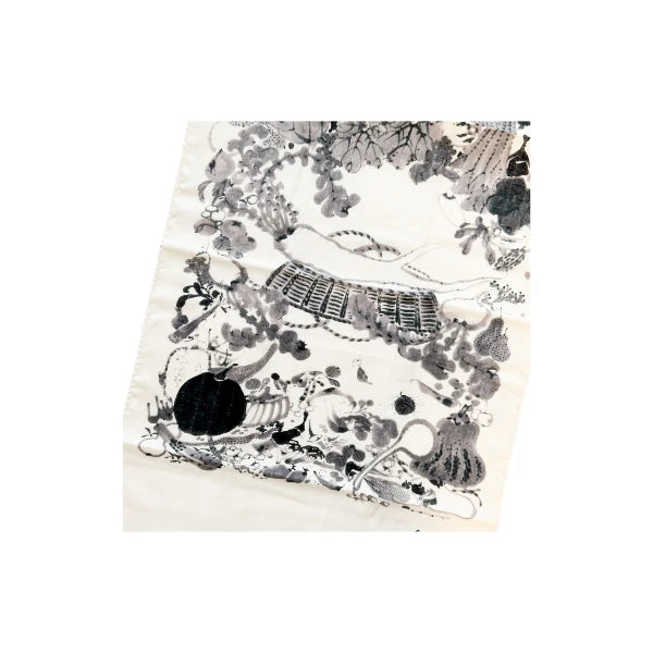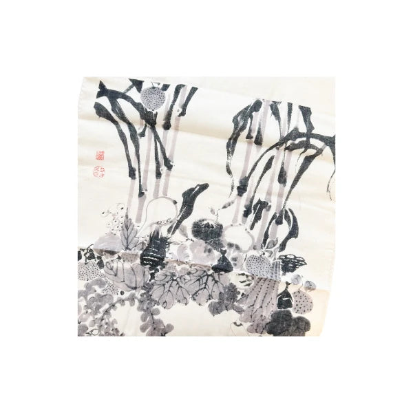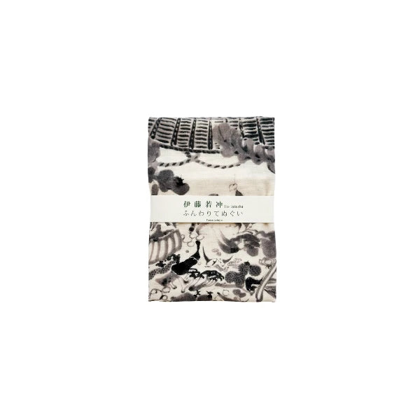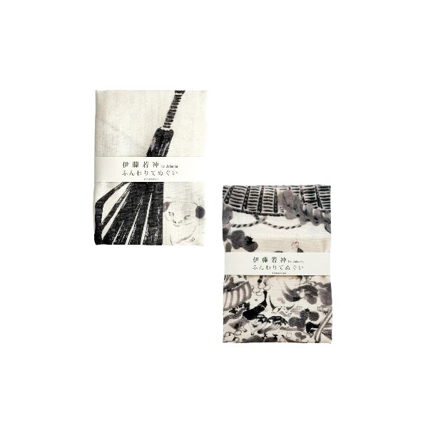 He traído para tí dos modelos de tenugui estampadas muy especiales, fabricadas en gasa de algodón de forma artesanal en Japón utilizando la técnica de Shizome. El estampado es la reproducción de obras de arte antiguo, ejecutadas con pincel en blanco y negro por el afamado Ito Yakuchu.