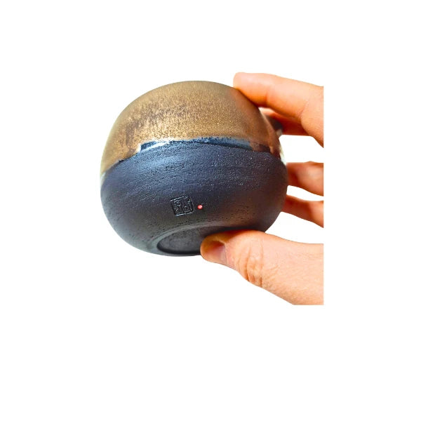 Este yuzamashi sin mango de estilo japonés en cerámica porosa color negro y dorado, ha sido producido a mano por el estudio francés Tōko. Hazte con tu complemento ideal en la preparación del matcha.